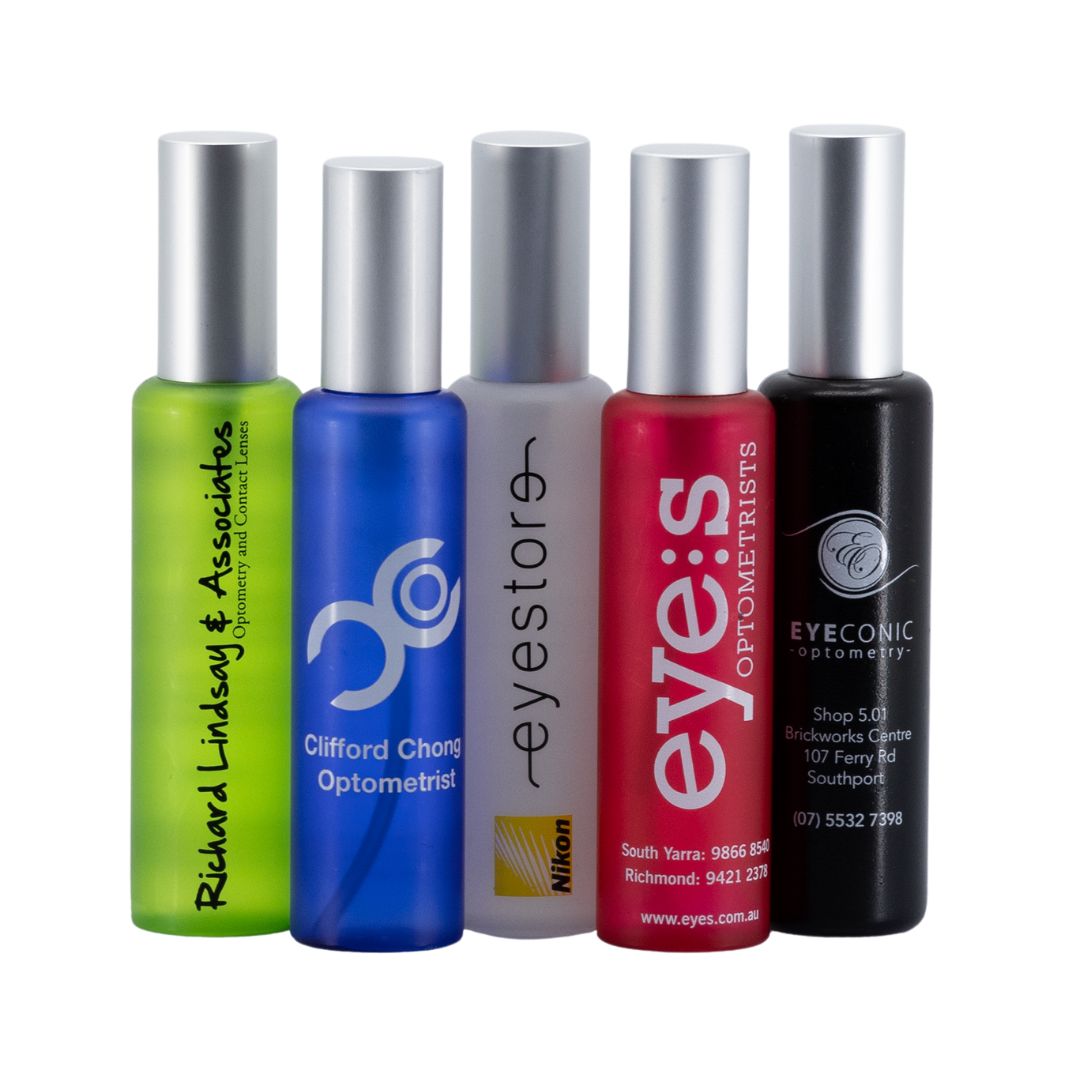These slim and stylish frosted bottles of Optica lens cleaning solution are available in 5 different colours and able to be personalised with your company details. A great way to create brand awareness with your customers.