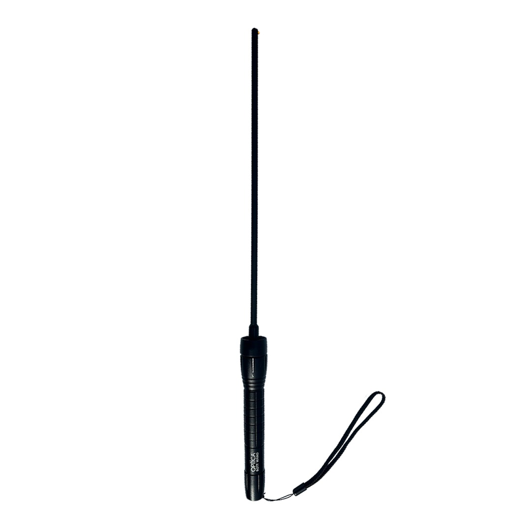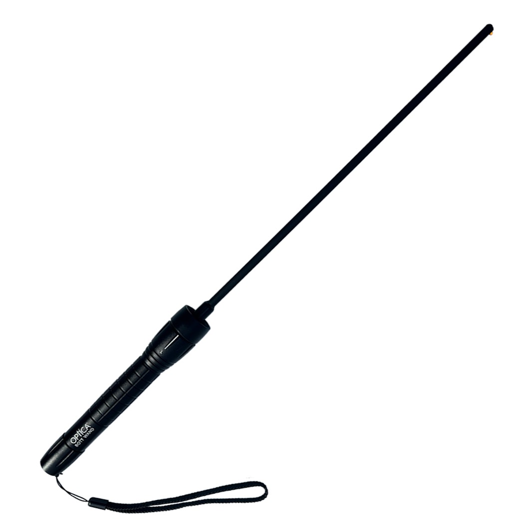 The quality aluminium handle fits comfortably into the hand. Two AA-size batteries power the Wand. The handle supports a long black wand which contains the flashing LED light. The light is fitted into the side of the wand which allows it to be easily turned away from the subject to allow for false-positive tests.