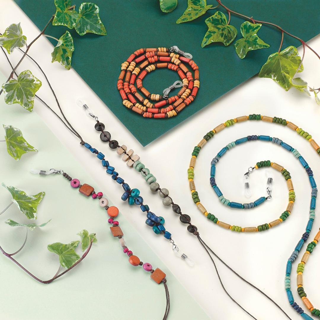 Handcrafted chains with wooden elements in colours inspired by nature. Individually packaged in Life Gate’s Impatto Zero branded gift boxes