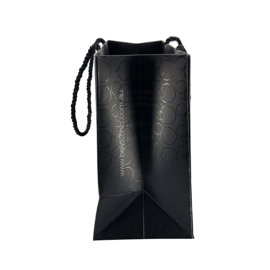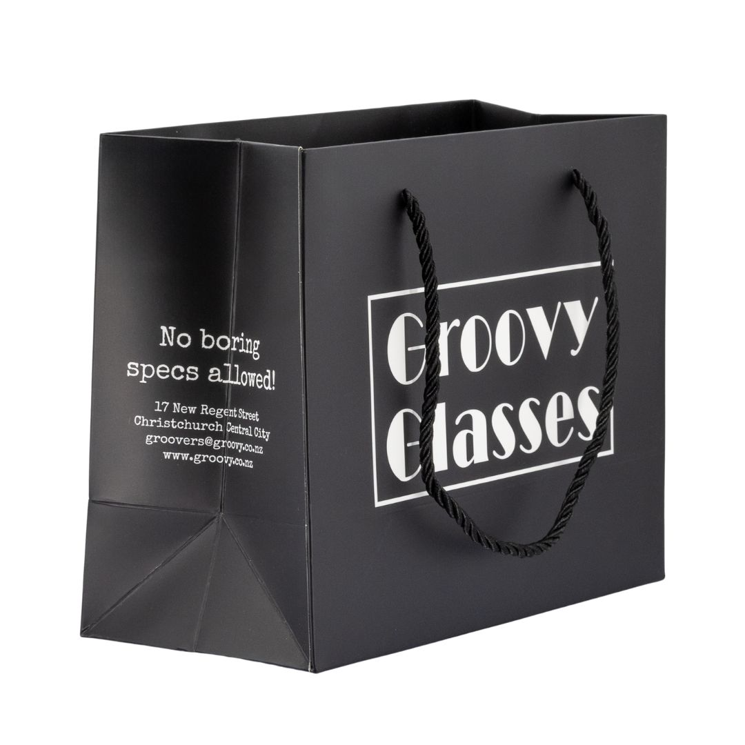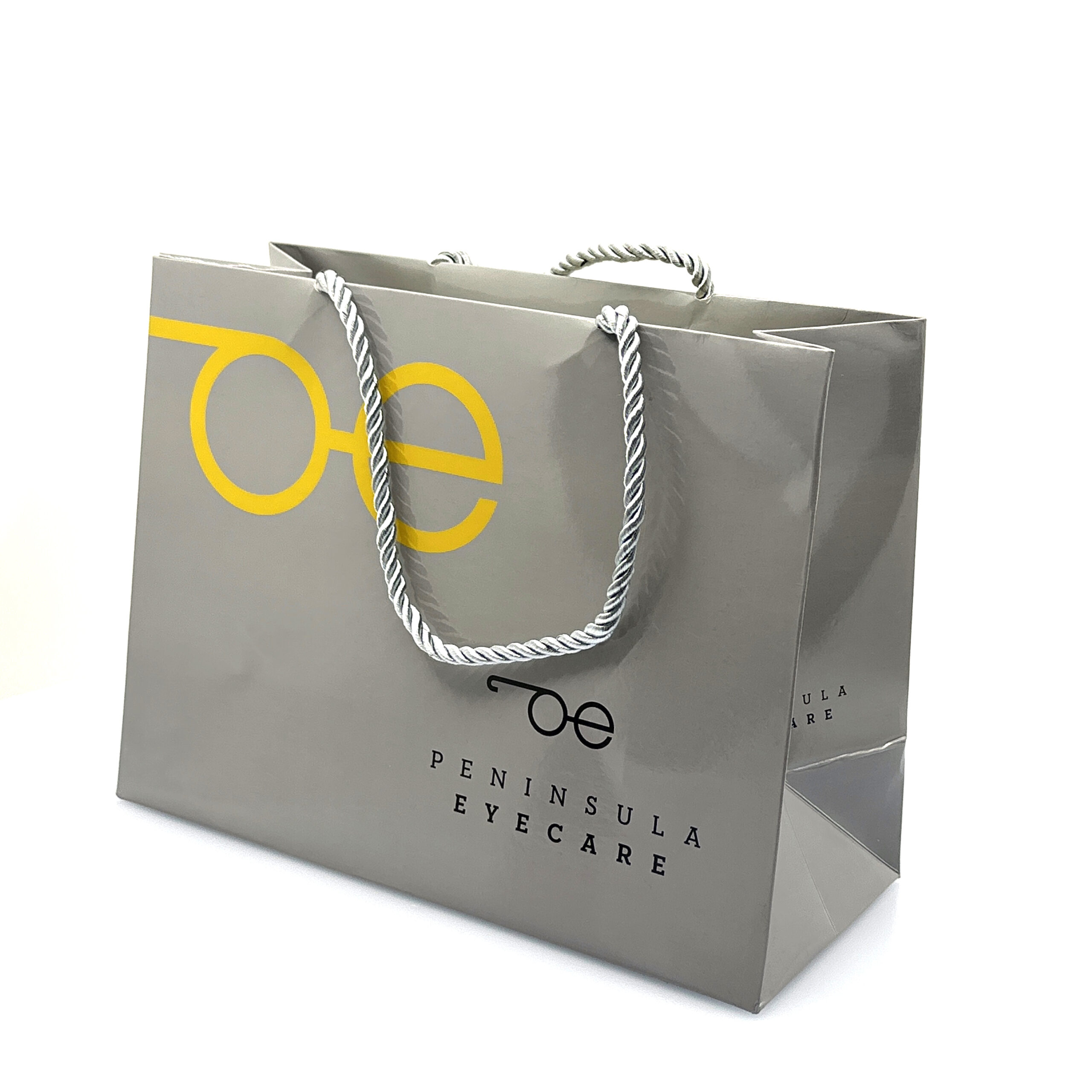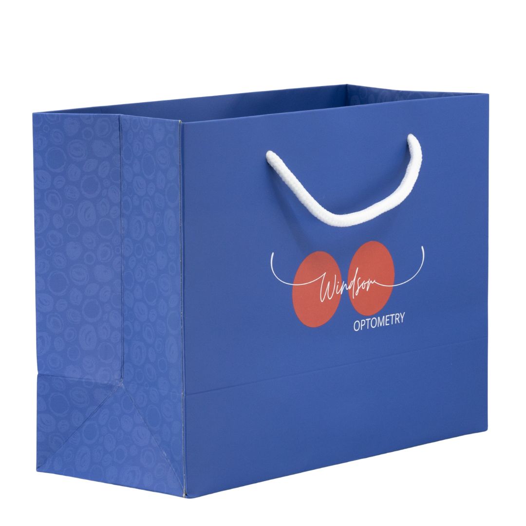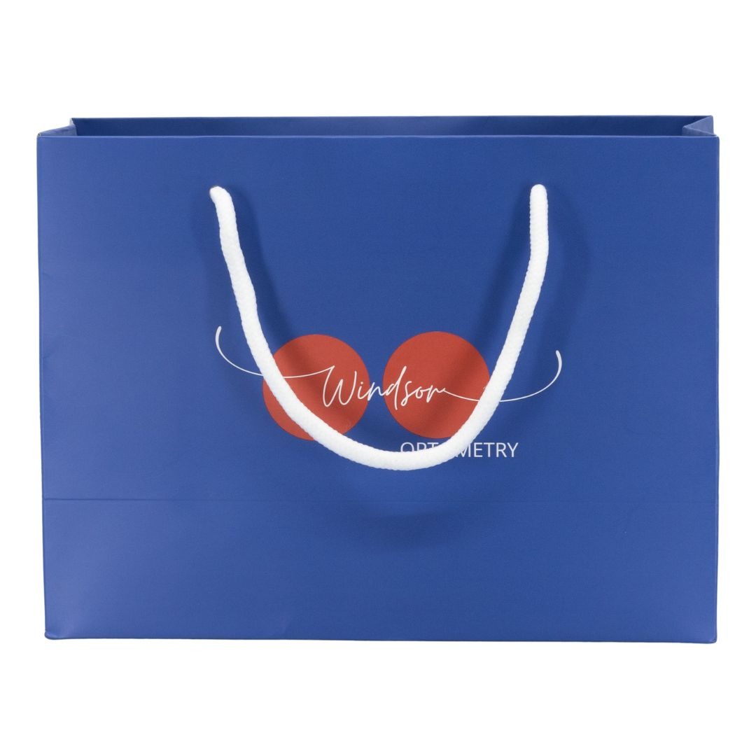 Custom printed paper bags are a fantastic way to send your brand out the door with each and every customer. Slim rope handles and square shape bag are suitable for all manner of products. 24 x 18 x 10cm