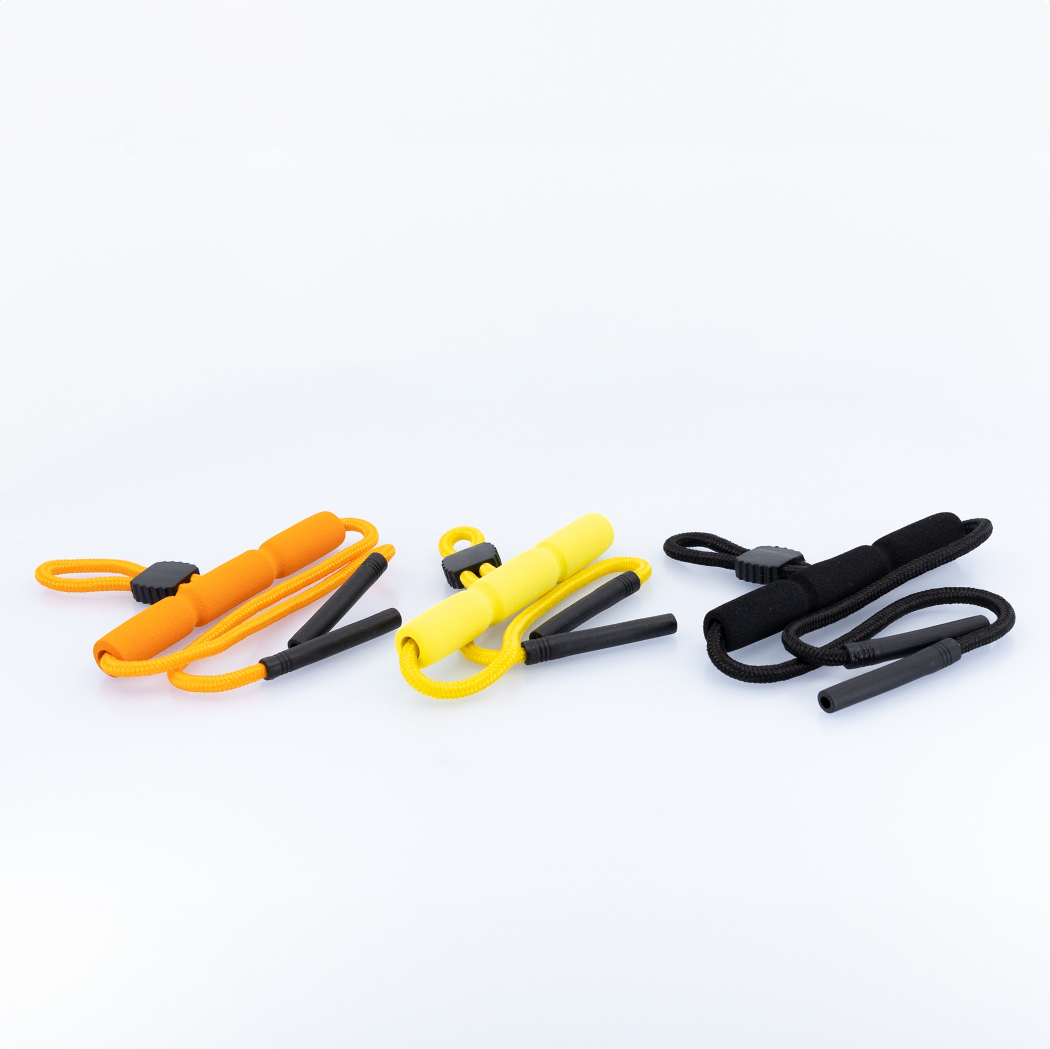 Adjustable floating glasses cord with rubber ends for a secure fit.