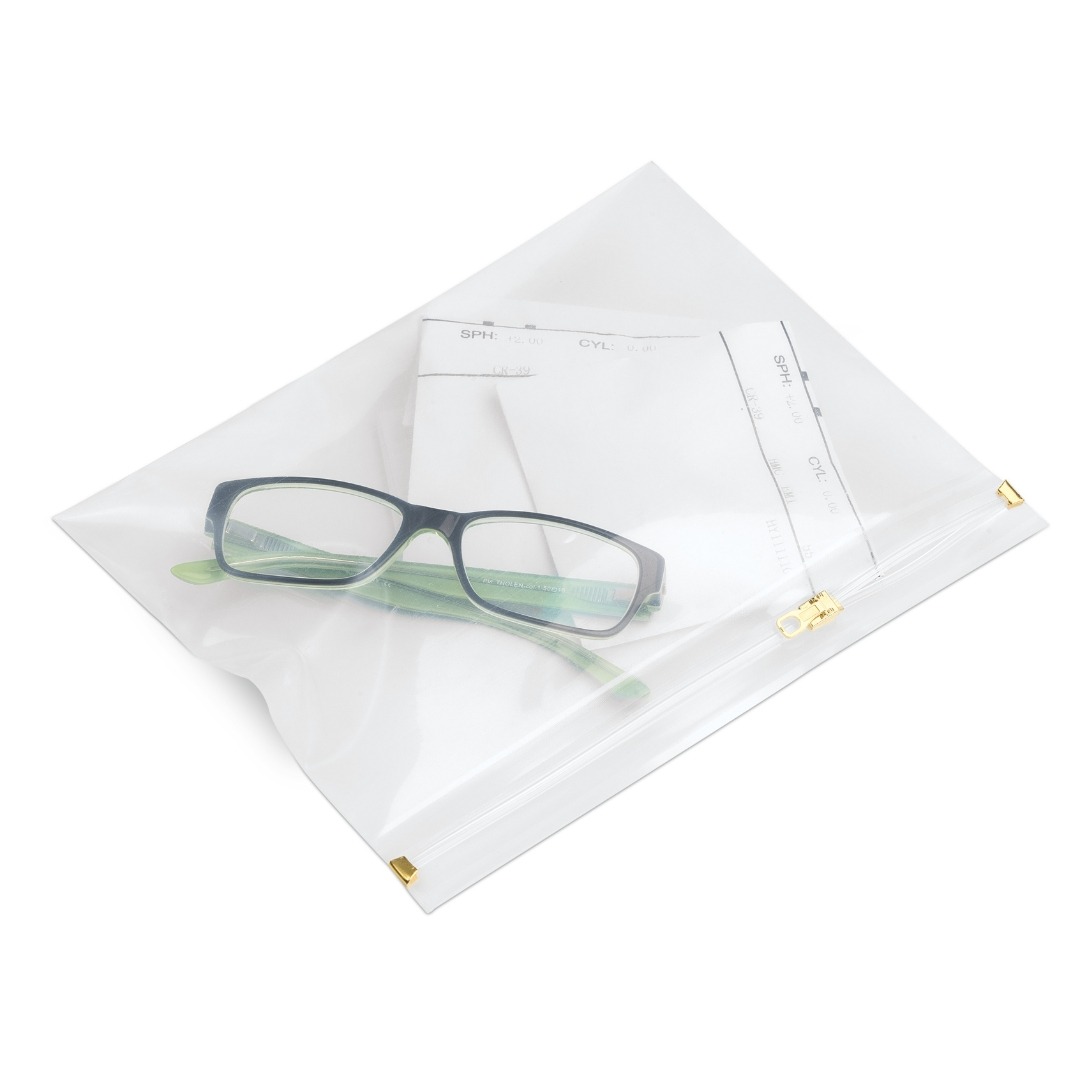 For improved organization in the workshop and dispensing room because frame, lenses and file card is in one bag