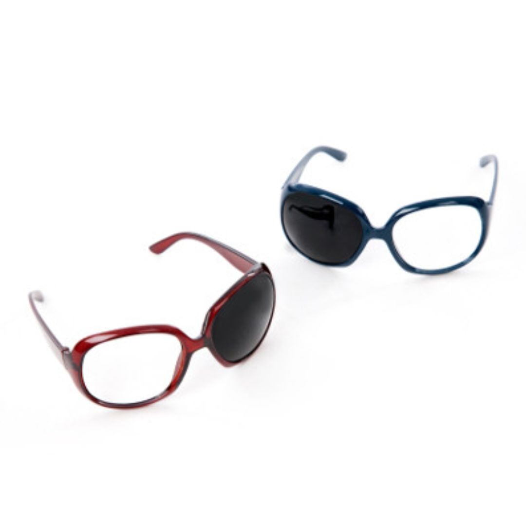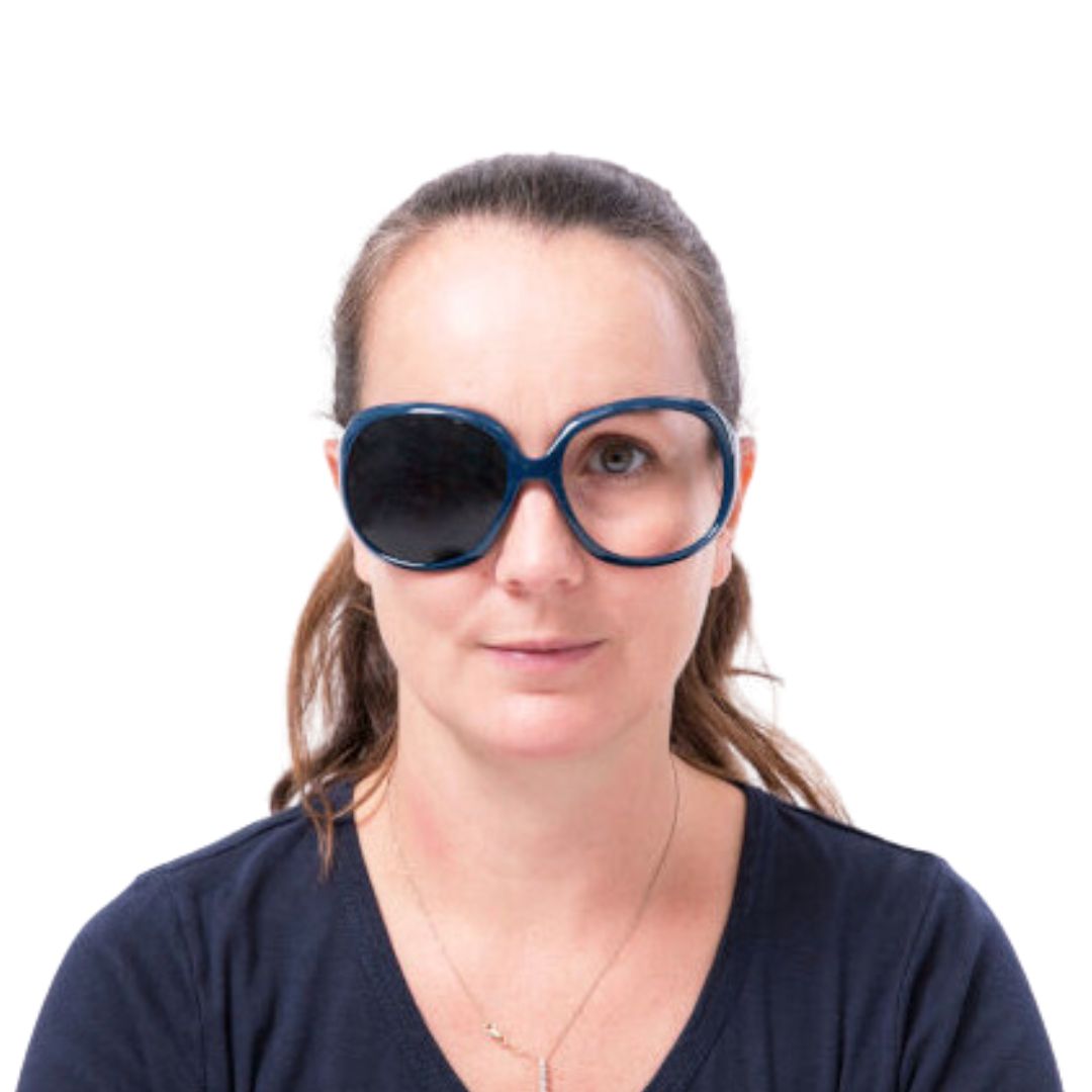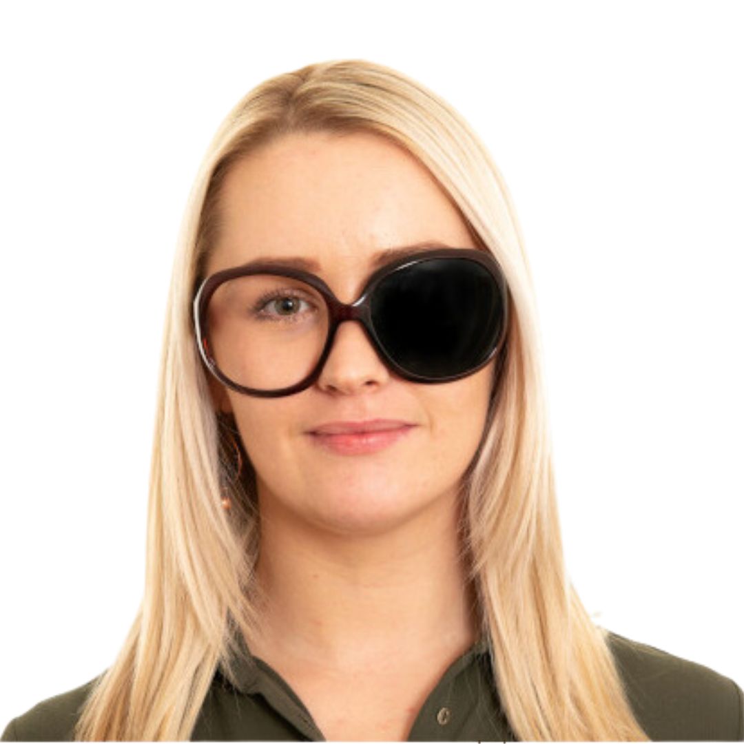 Large glasses frames, suitable from approximately age 8 to adult with one occluded lens for vision testing. Set of two pairs, navy and brown colour. They measure 14.5cm across the inside of the frame.