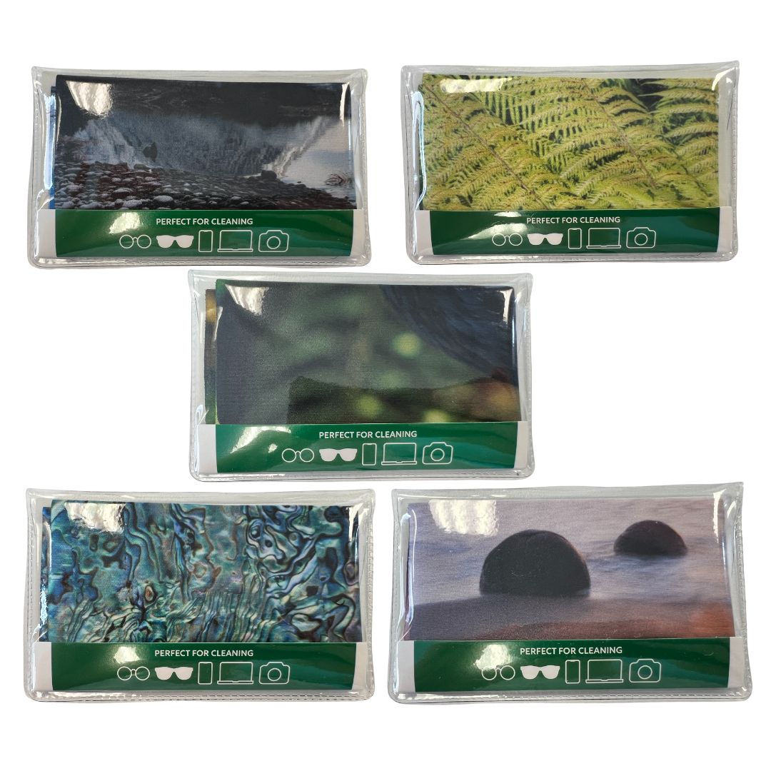 Our design series of eyewear cleaning cloths offer NZ scenic images and NZ native bird designs.