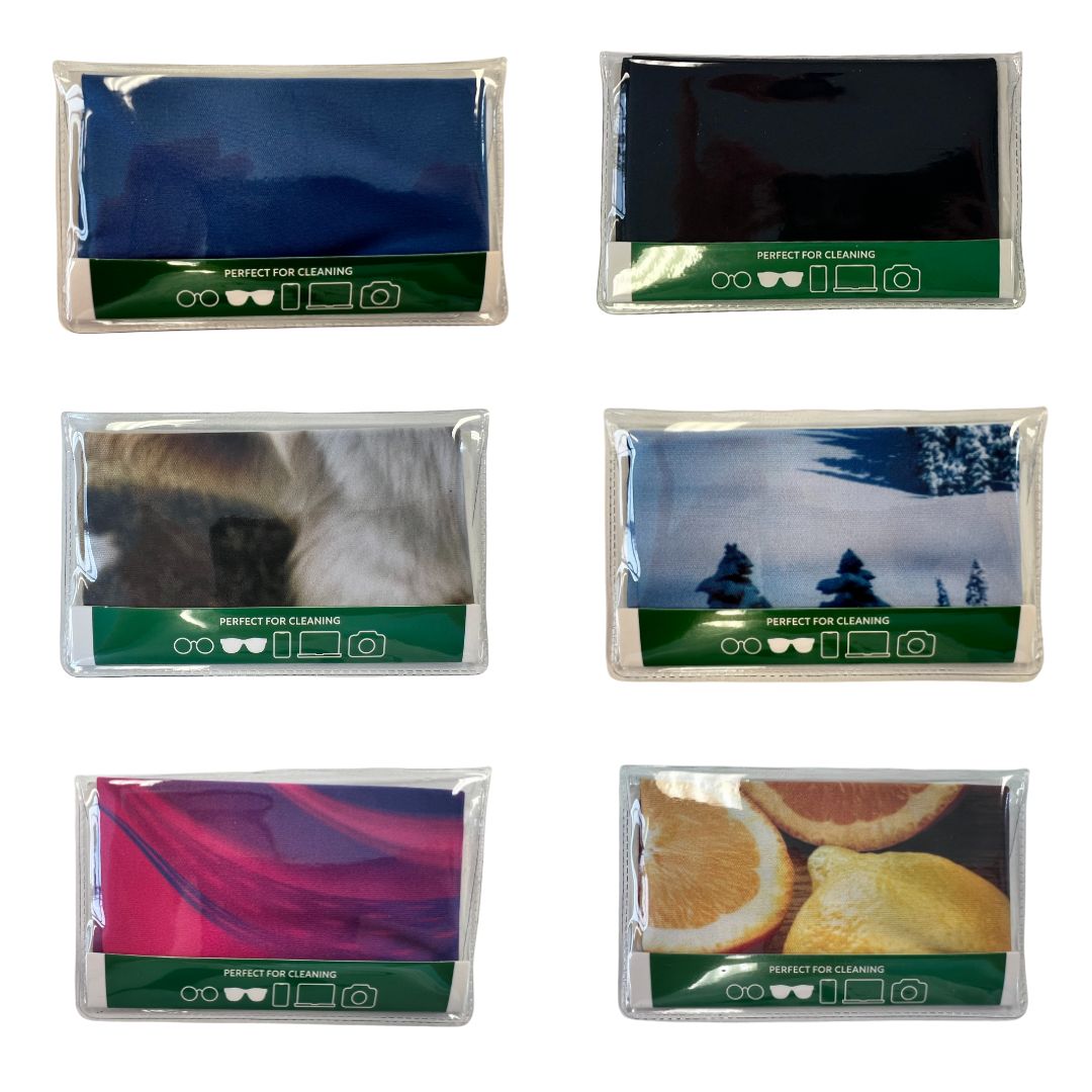 Inside a handy clear PVC wallet, these microfibre cloths are available in both plain colours and patterns. Neatly packed into an Optica counter display box this will be an eye-catching accessory to add to your customers purchase.